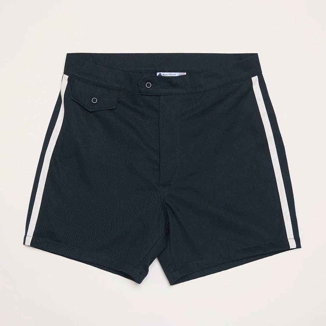 These trunks are representative of the 50s with a simple design featuring a button fly, change pocket, and trimming tape on both sides. If you look at photos and videos from that time, you'll see that everyone was wearing the navy blue with red and white stripes. The people wearing them were Joe Quigg, Buzzy Trent, Peter Cole, Rick Gregg, George Downing, and Bud Browne. I don't think I need to explain, but they were all the greatest!